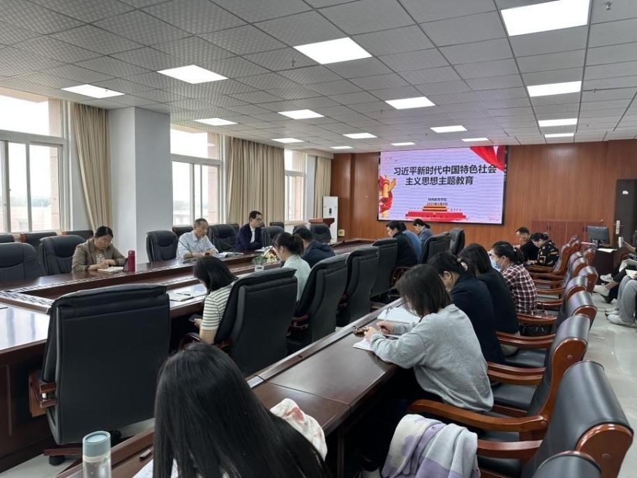 5月9日下午2:00,我院在708举行学习贯彻习近平新时代中国特色社会主义思想主题教育学习,全体教职工参加此次学习,党总支书记申培新主持领学。